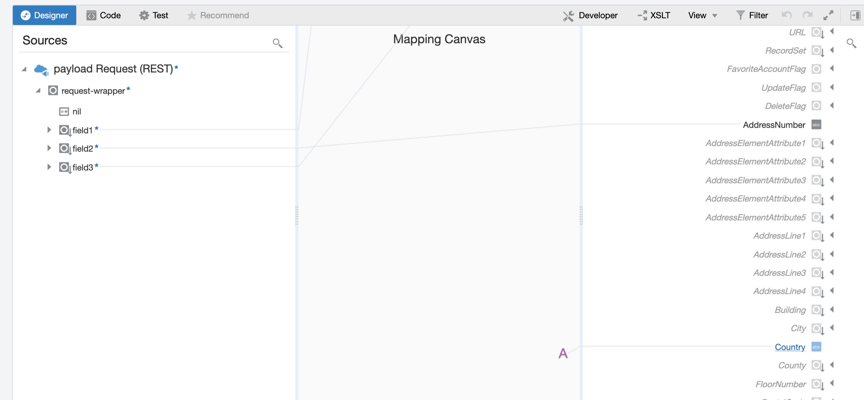 We map some fields to be inputs from fields 1-3, but some fields are hardcoded. You can add more fields to the REST adapter if you don’t want to hardcode values.